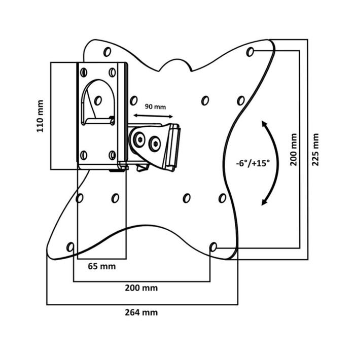 Кронштейн Luazon KrON-78, для ТВ, наклонно-поворотный, 14-52", 60-250 мм от стены, чёрный