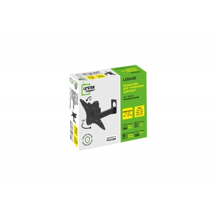 Кронштейн LE'STER LST-201.04, для ТВ, наклонно-поворотный,10-55",95-236 мм от стены,черный