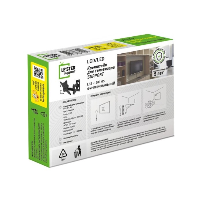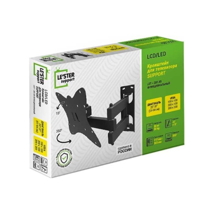 Кронштейн LE'STER LST-201.05, для ТВ,наклонно-поворотный,10-55",117-383 мм от стены,черный