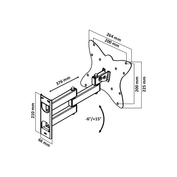Кронштейн Luazon KrON-78, для ТВ, наклонно-поворотный, 14-52", 60-250 мм от стены, чёрный