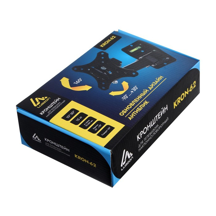 Кронштейн Luazon KrON-62, для ТВ, наклонно-поворотный, 10-30", 70-360 мм от стены, чёрный