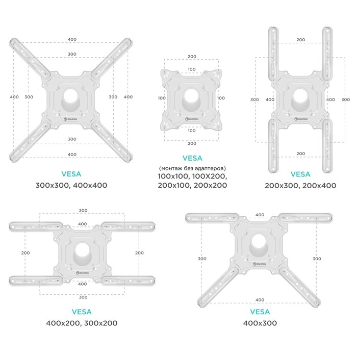 Кронштейн ONKRON M4, для ТВ, наклонно-поворотный, 32"-65", 55-500 мм от стены, белый
