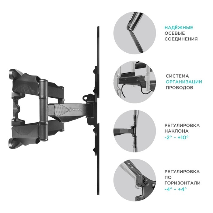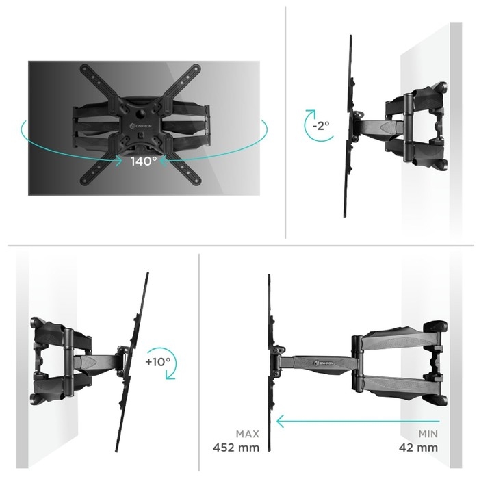 Кронштейн ONKRON M5, для ТВ, наклонно-поворотный, 37"-70", 42-452 мм от стены, черный