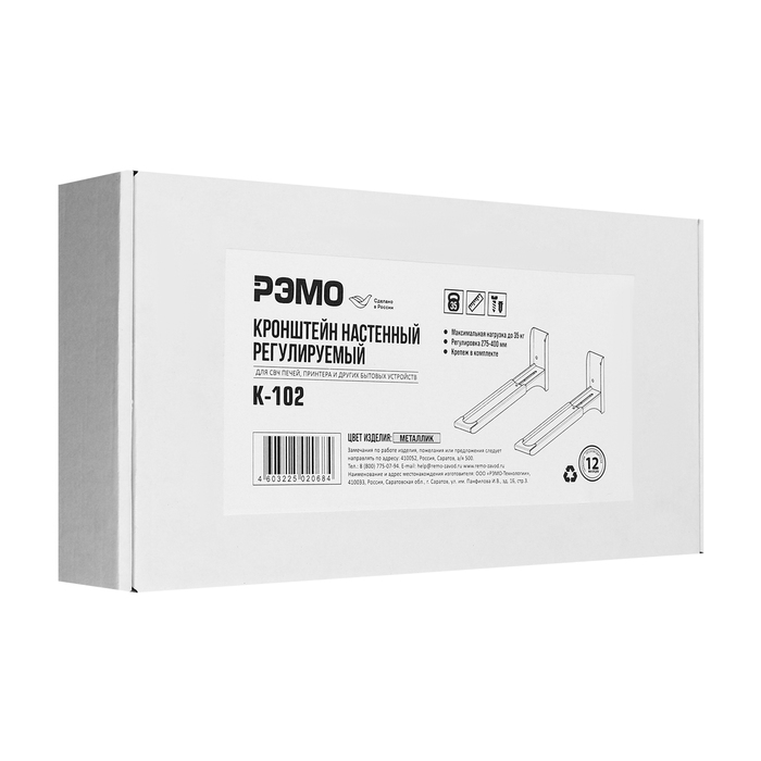 Кронштейн "РЭМО" К-102, для микроволновой печи, регулируемый, до 35 кг, 275-400 мм, металлик