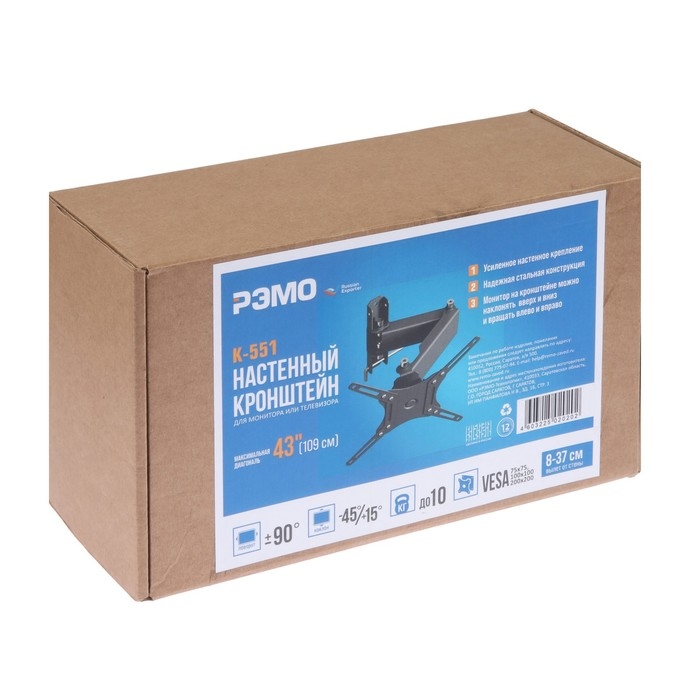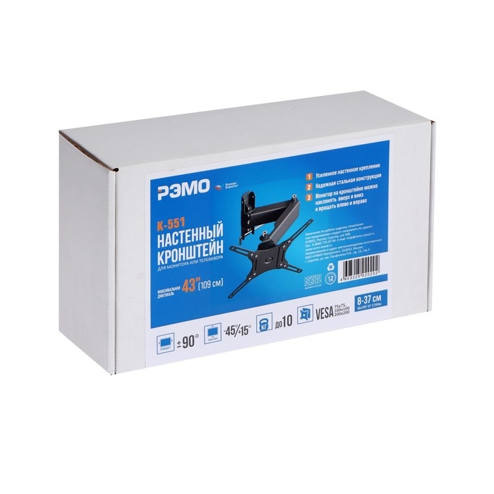 Кронштейн "РЭМО" К551, для ТВ, наклонно-поворотный, 13-43", чёрный