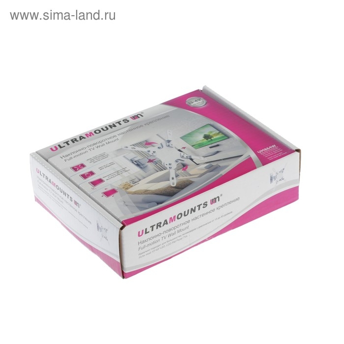 Кронштейн Ultramounts UM864W, для ТВ, наклонно-поворотный, 13-43", 60-190 мм от стены, белый