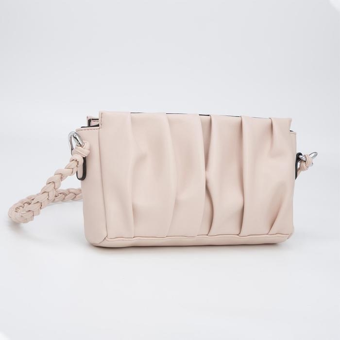 Кросс-боди на молнии, наружный карман, длинный ремень, цвет светло-розовый