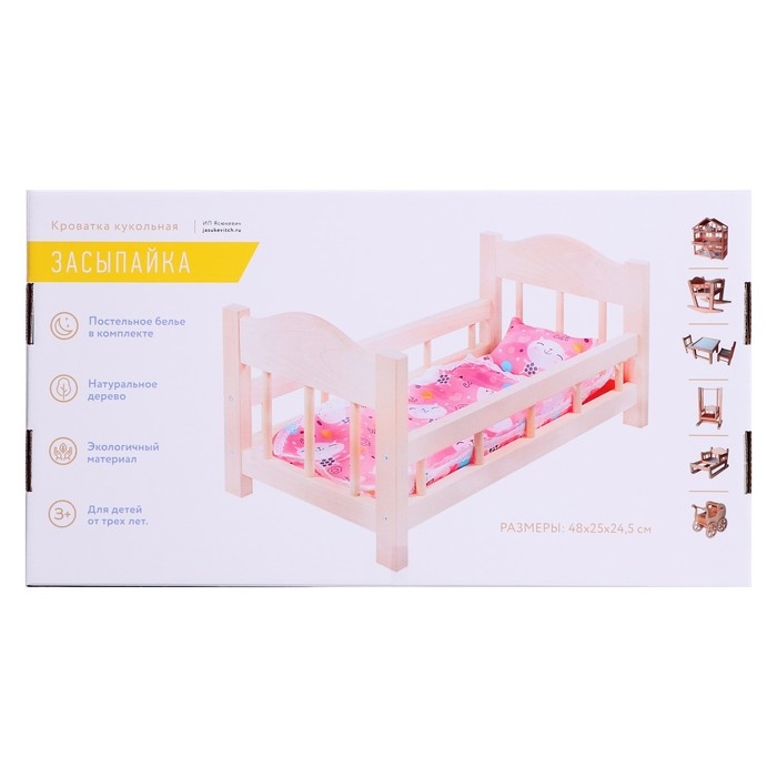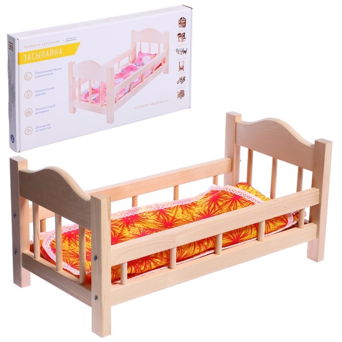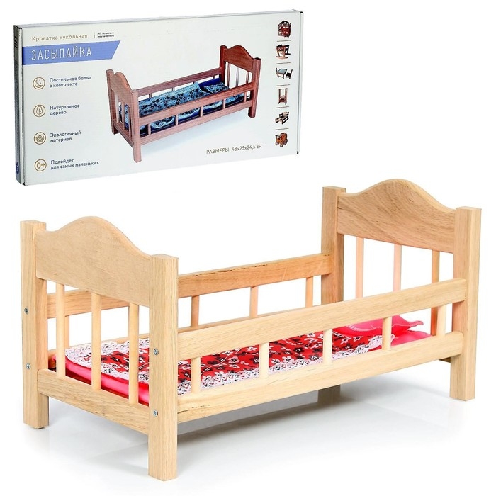 Кроватка для кукол деревянная №14, цвета МИКС