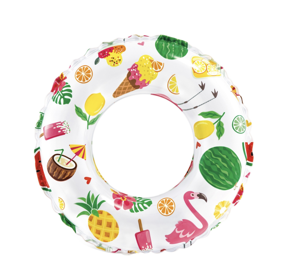 С надувным кругом для плавания малышка сможет уверенно держаться на воде, научится плавать и перестанет бояться воды. От него просто невозможно оторваться: приятный дизайн в виде разноцветных фигур и узоров, безусловно, понравится крохе. Надувной круг изготовлен из прочного материала ПВХ, устойчивого к повреждениям и солнечным лучам — даже при частом использовании он прослужит не один сезон. Характеристики: толщина материала: 0,18 мм.