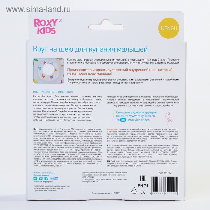 Круг для купания новорожденных предназначен для водных процедур с самого рождения. C этим кругом водные процедуры пройдут весело и просто. Ваш малыш будет свободно держаться на воде, шевелить ручками и ножками, при этом нос и рот будут защищены от попадания воды, а звенящая погремушка внутри развеселит вашего карапуза. Круг оценят родители, так как им не придется все время стоять в согнутом положении. Надежная фиксация обеспечивается двумя удобными регулируемыми липучками и карабином. Места крепления застежек дополнительно усилены. Круг имеет мягкий внутренний шов, который не будет натирать шею. Анатомическая выемка для подбородка позволяет удобно зафиксировать голову. Может использоваться в домашних условиях и на открытых водоемах глубиной не более 1 метра. В конструкции предусмотрен ниппель с обратным клапаном, который удержит воздух даже с открытым колпачком. Соответствует европейским стандартам качества и безопасности детских товаров.