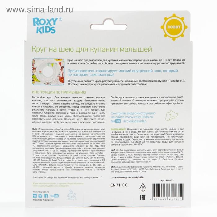 Круг для купания новорожденных предназначен для водных процедур с самого рождения. C этим кругом водные процедуры пройдут весело и просто. Ваш малыш будет свободно держаться на воде, шевелить ручками и ножками, при этом нос и рот будут защищены от попадания воды, а звенящая погремушка внутри развеселит вашего карапуза. Круг оценят родители, так как им не придется все время стоять в согнутом положении. Надежная фиксация обеспечивается двумя удобными регулируемыми липучками и карабином. Места крепления застежек дополнительно усилены. Круг имеет мягкий внутренний шов, который не будет натирать шею. Анатомическая выемка для подбородка позволяет удобно зафиксировать голову. Может использоваться в домашних условиях и на открытых водоемах глубиной не более 1 метра. В конструкции предусмотрен ниппель с обратным клапаном, который удержит воздух даже с открытым колпачком. Соответствует европейским стандартам качества и безопасности детских товаров.