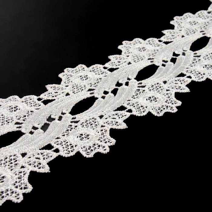 Кружево гипюровое, 80 мм × 9 ± 0,5 м, цвет белый