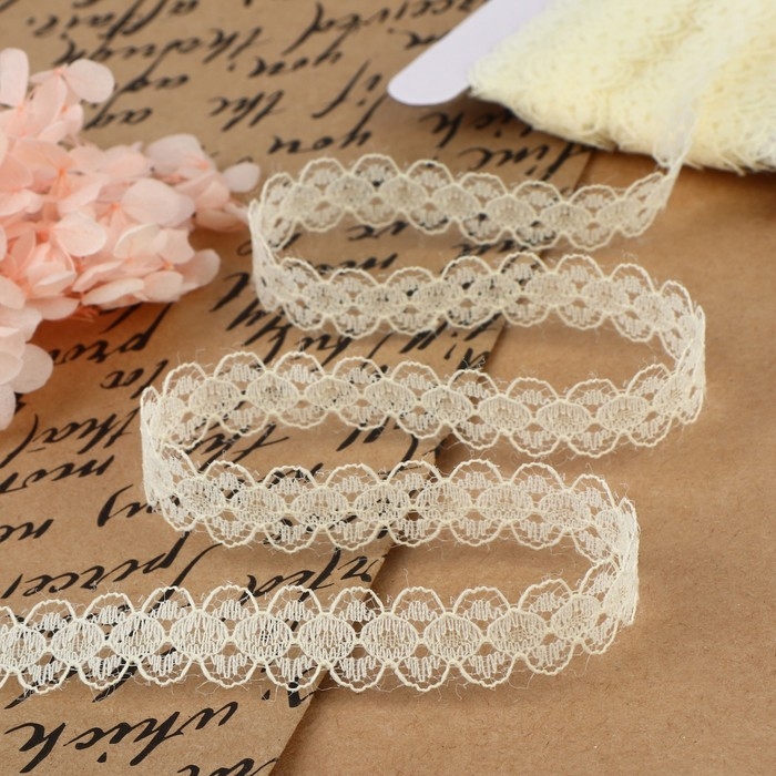 Кружево капроновое, 15 мм × 10 ± 1 м, цвет молочный