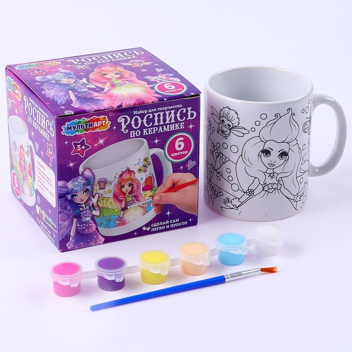 Кружка для росписи, 6 цв. «Цветочные феи»