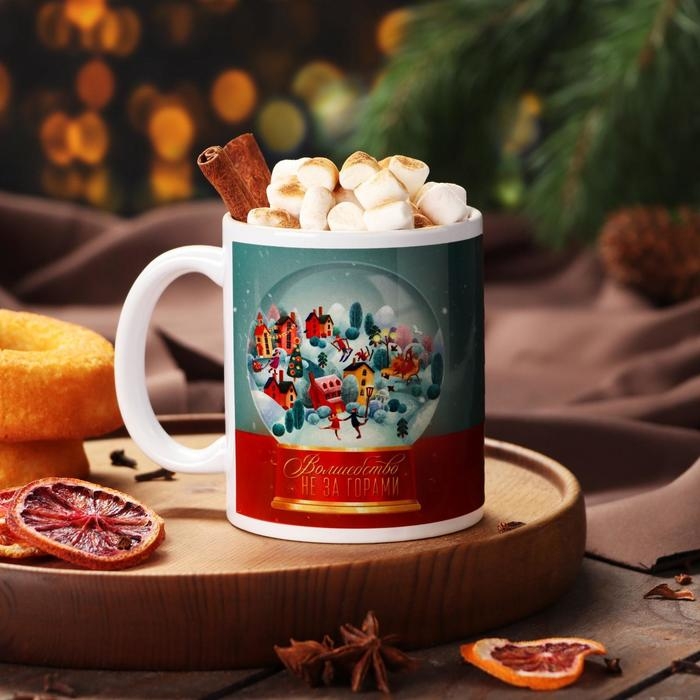 Кружка новогодняя, сублимация "Волшебство не за горами" снежный шар