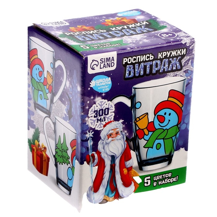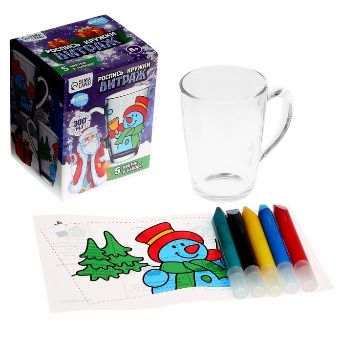 Кружка под раскраску витражными красками на новый год «Снеговичок», новогодний набор для творчества