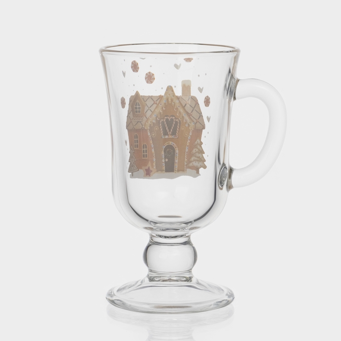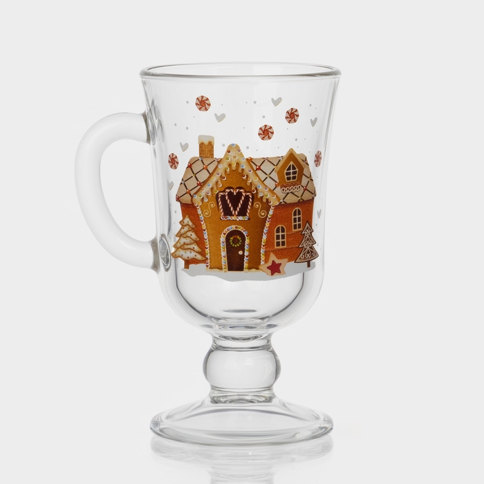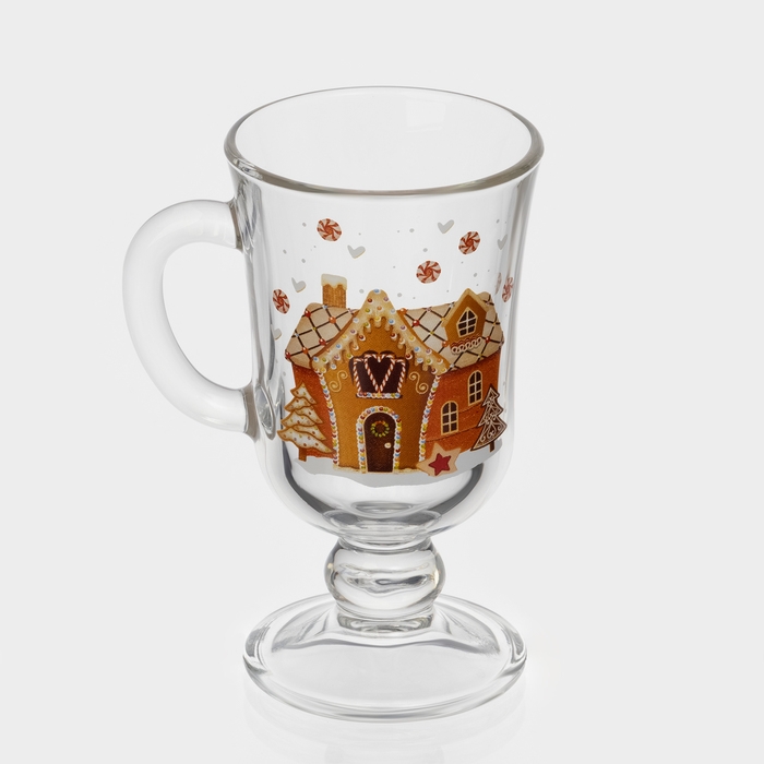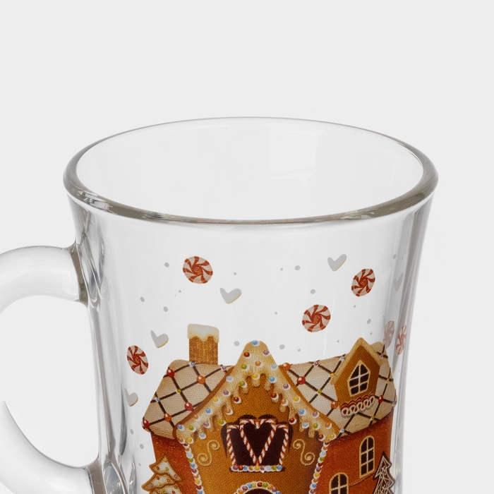 Кружка стеклянная для глинтвейна «Пряничный домик», 200 мл