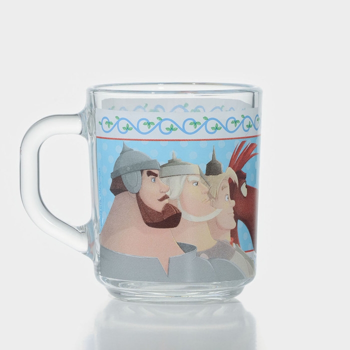 Кружка стеклянная «Три Богатыря» порадует маленького поклонника мультфильма.