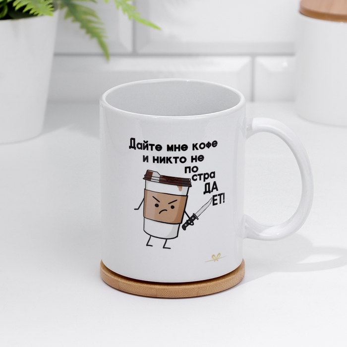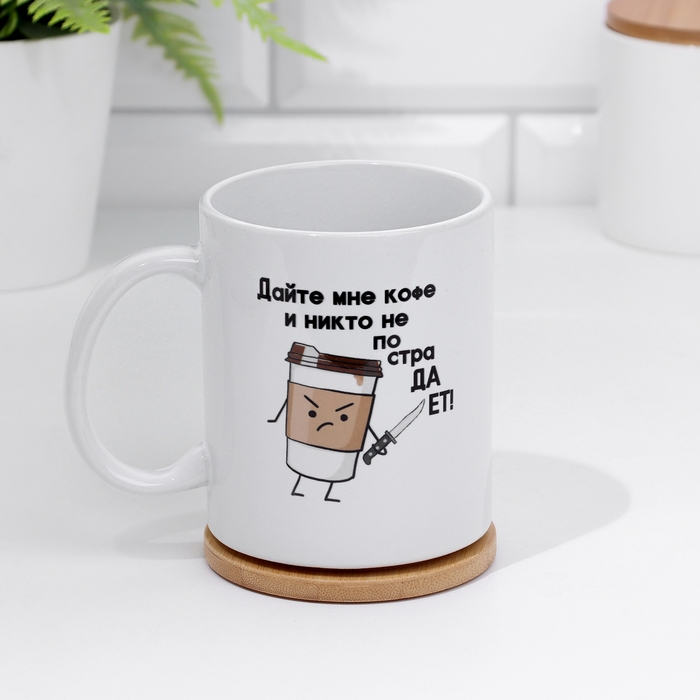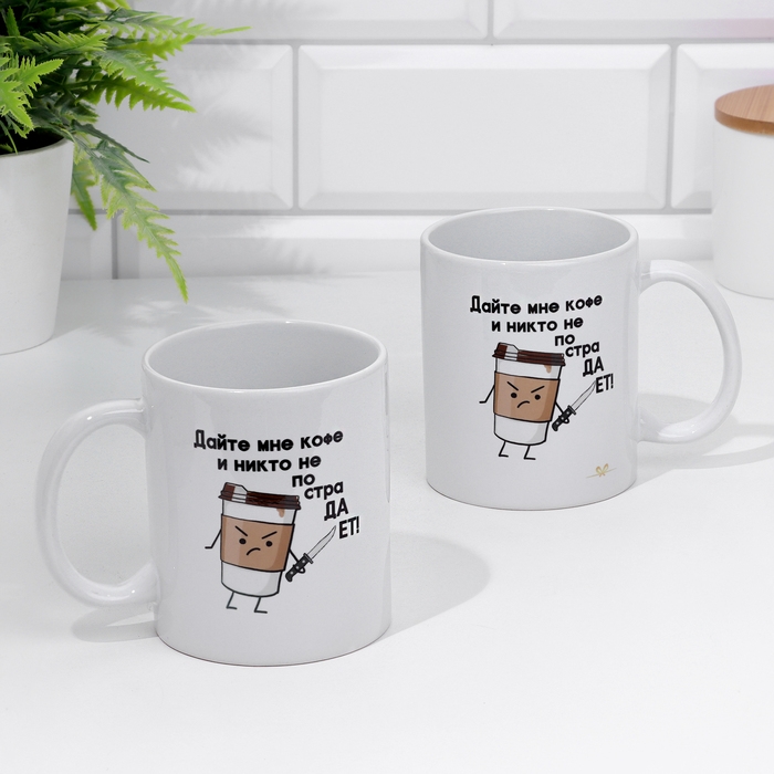 Кружка сублимация "Дайте мне кофе и никто не пострадает" 320 мл, с нанесением