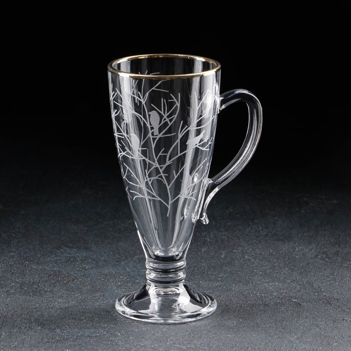 Кружка «Венский лес» - это превосходный предмет, который сочетает в себе красоту и функциональность. Уникальный дизайн привлечет внимание гостей и добавит уюта в ваш интерьер. Рисунок леса и птиц на стекле создает особую атмосферу, а золотая оборка придает ощущение роскоши и изысканности.