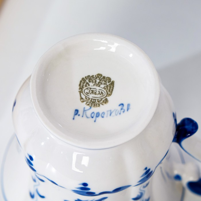 Каждое изделие выливается из фарфора, расписывается, обжигается и покрывается глазурью руками мастера.