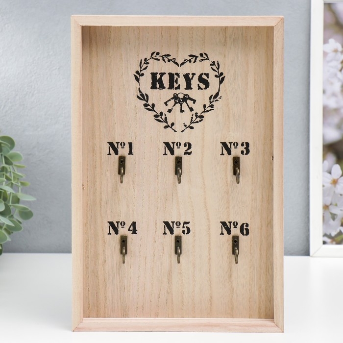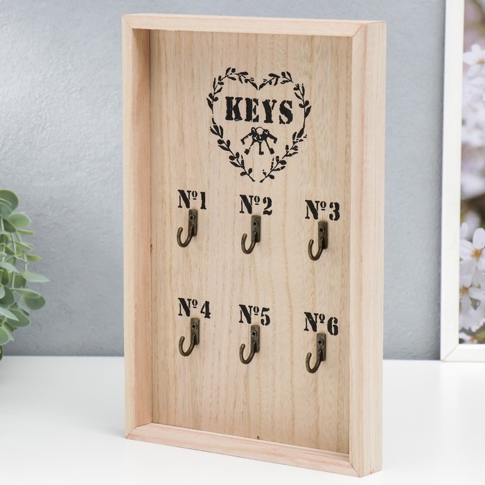 Крючки декоративные дерево 6 крючков "Сердце с ключами" беж 30х20х3 см