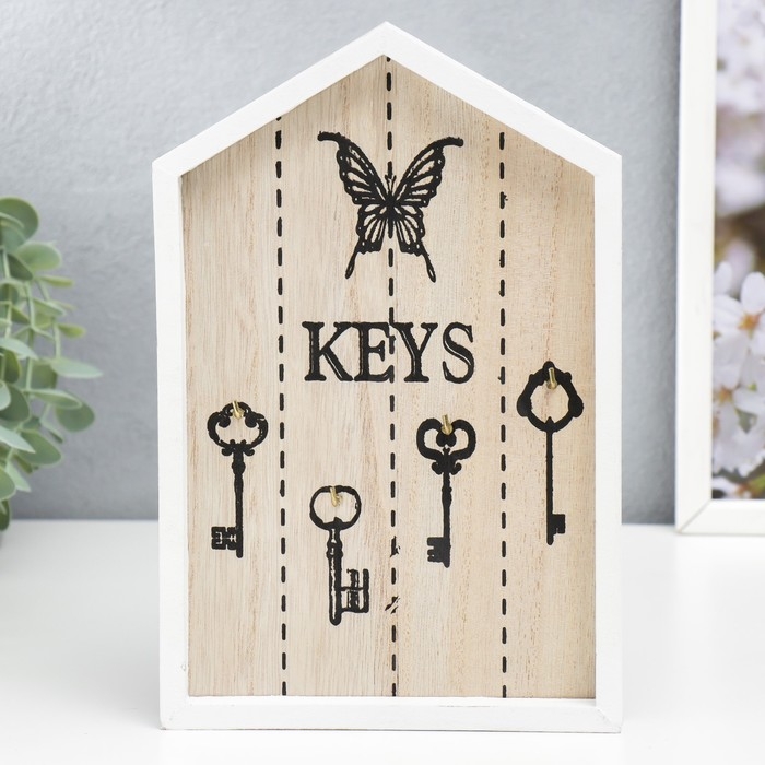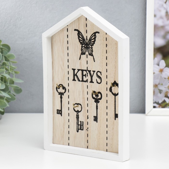 Крючки декоративные дерево "Дом с ключами" белая 24х16х2 см