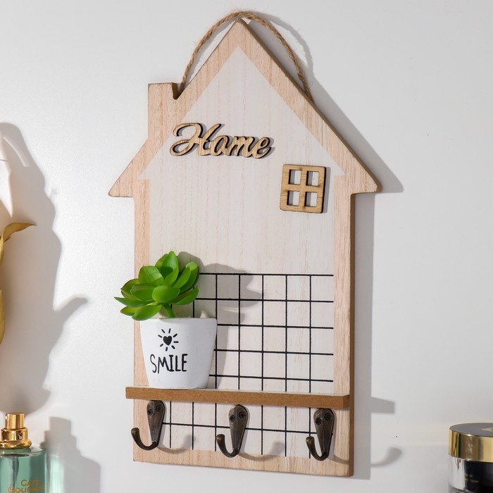 Крючки декоративные дерево "Домик - Суккулент в горшочке" 30х20х4 см