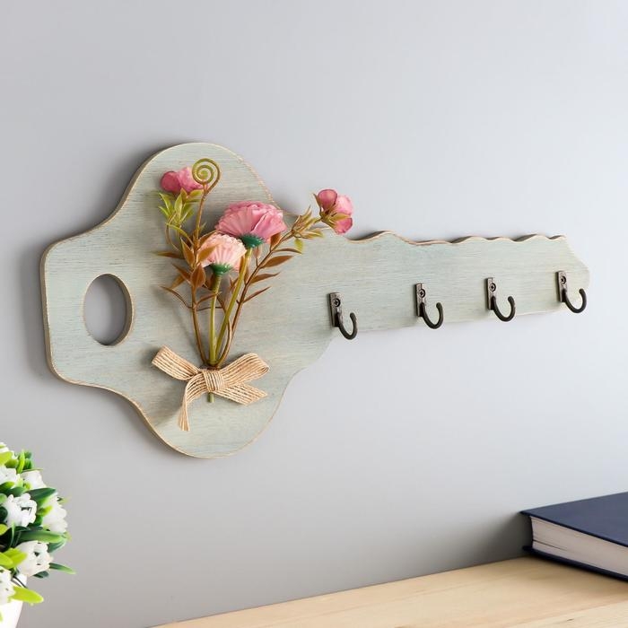 Крючки декоративные дерево "Ключик с букетом цветов" 16,5х34х2,5 см
