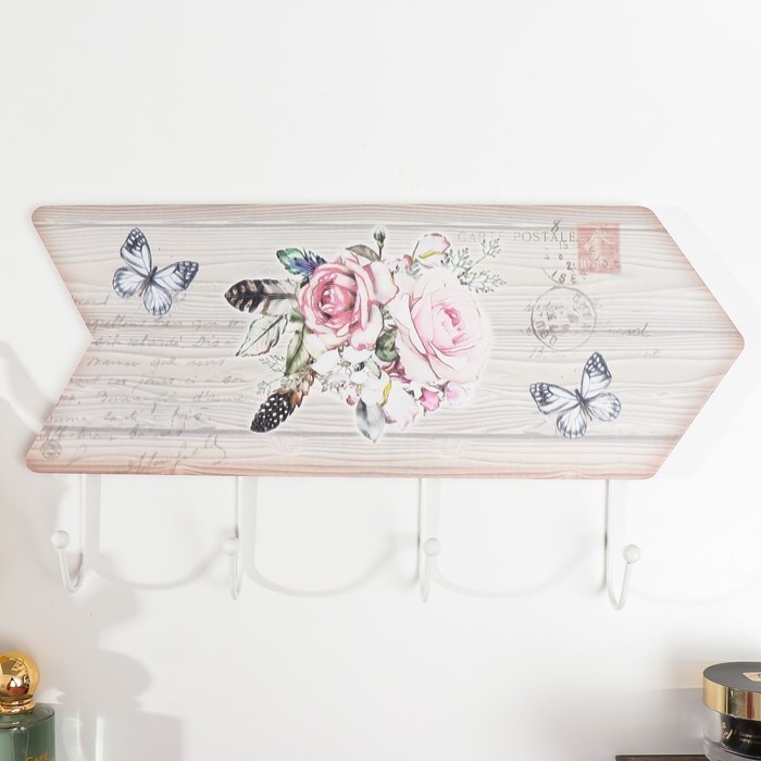 Крючки декоративные дерево "Розы с перьями и бабочками" 5,5х39,5х23 см