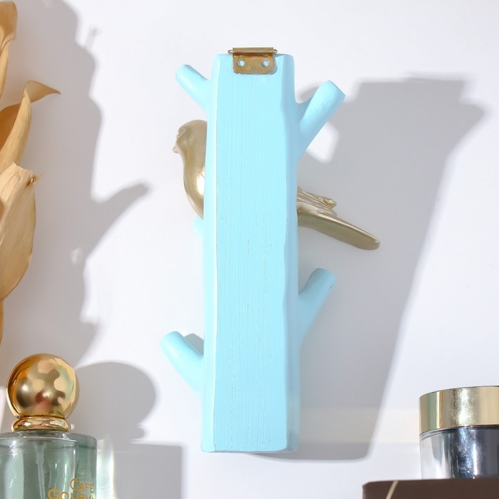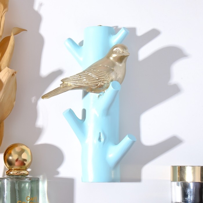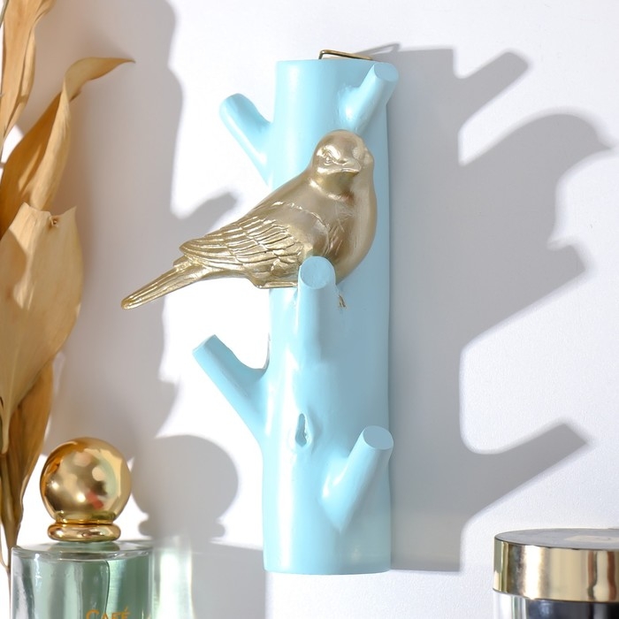 Крючки декоративные полистоун "Золотистая птичка на голубой ветке" 16х5,7х9,7 см
