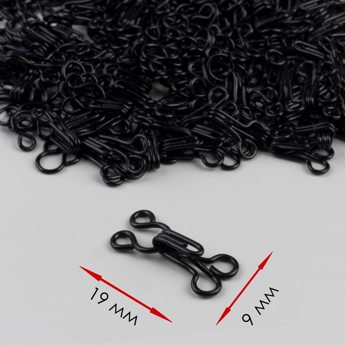 Крючок пришивной №3, 19 × 9 мм, 100 шт, цвет чёрный