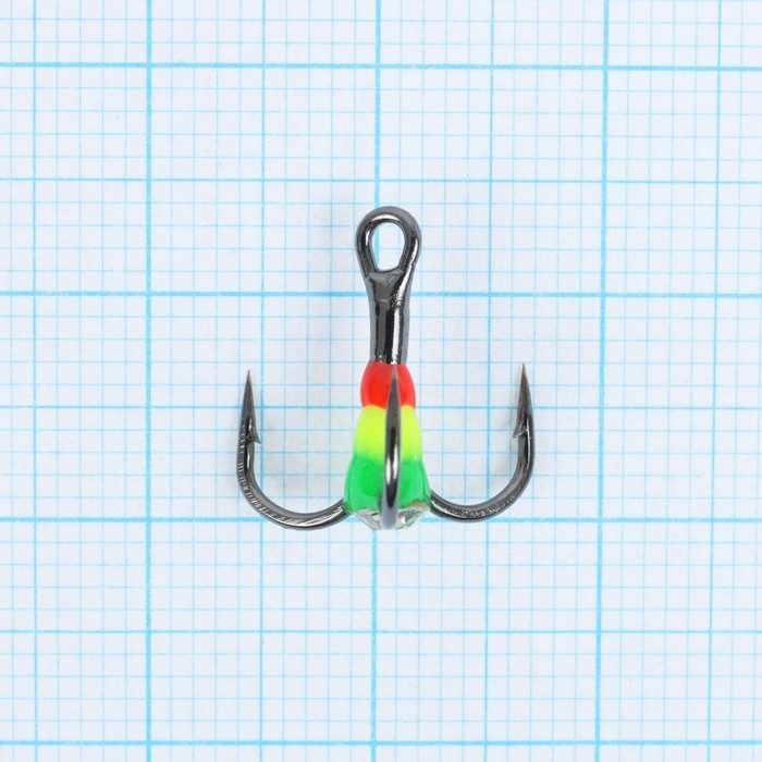 Крючок-тройник светофор Namazu, с каплей и камнем, 10 (INT), цвет GYR, в упаковке 5 шт.