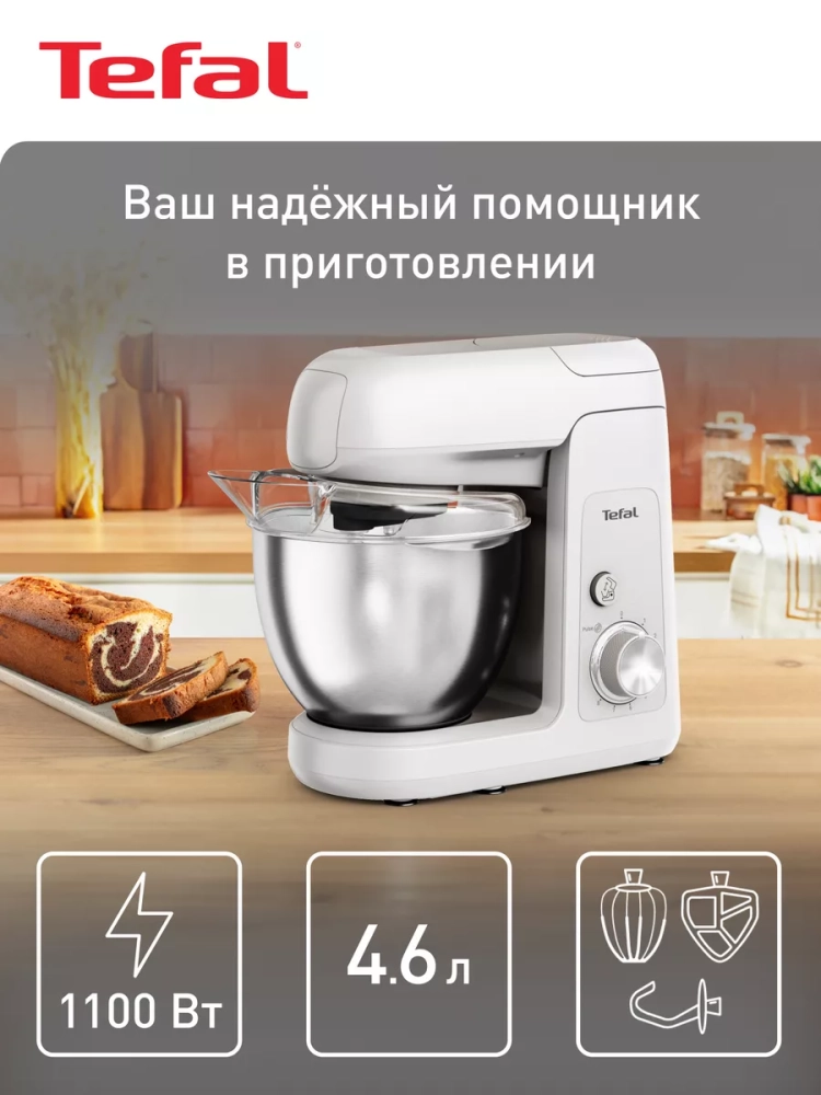 Кухонная машина Tefal Bake Partner QB521B38. Встречайте новую кухонную машину Bake Partner, с которой вы сможете легко и просто готовить потрясающе вкусную выпечку день за днем! Кухонная машина Bake Partner подойдет для приготовления любого теста и оснащена тщательно протестированной технологией EVER baking, обеспечивающей надежную и длительную работу устройства. Мотор мощностью 1100 Вт, планетарный механизм вращения, 8 скоростей + импульсный режим и набор универсальных аксессуаров делают Bake Partner вашим незаменим помощником для легкого приготовления невероятно вкусной выпечки.