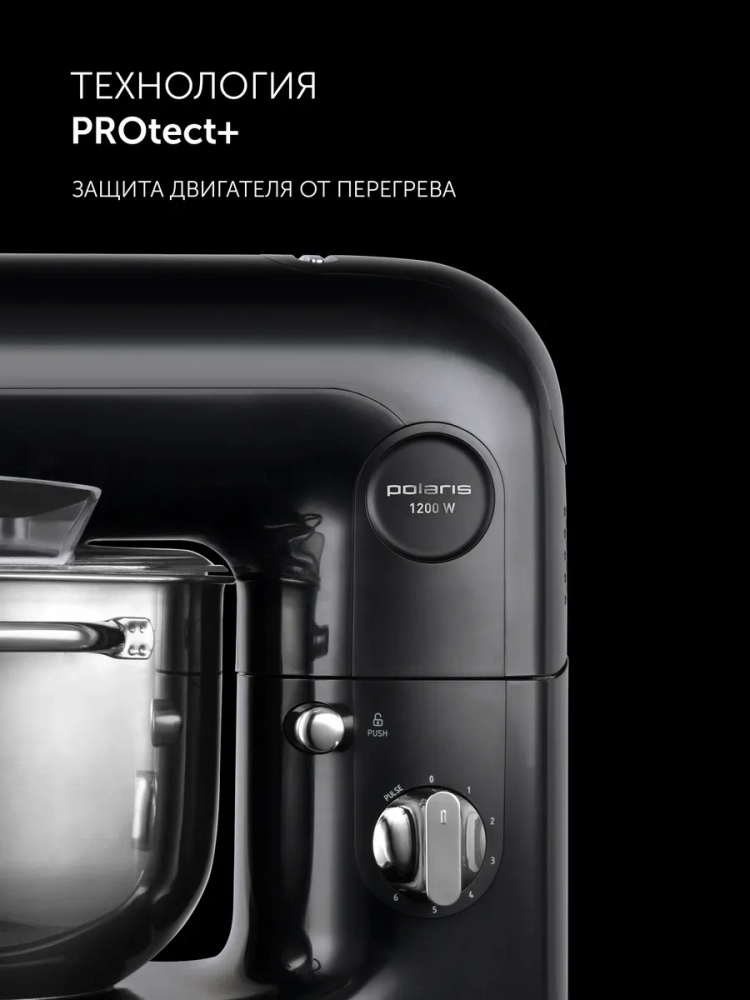 Техника для кухни оснащена резиновыми ножками-присосками, обеспечивающими отличную устойчивость на кухонном столе. Кухонная машина Поларис PKM 1206 сочетает в себе сразу несколько бытовых приборов в одном, избавляя от необходимости загромождать кухню лишними устройствами.