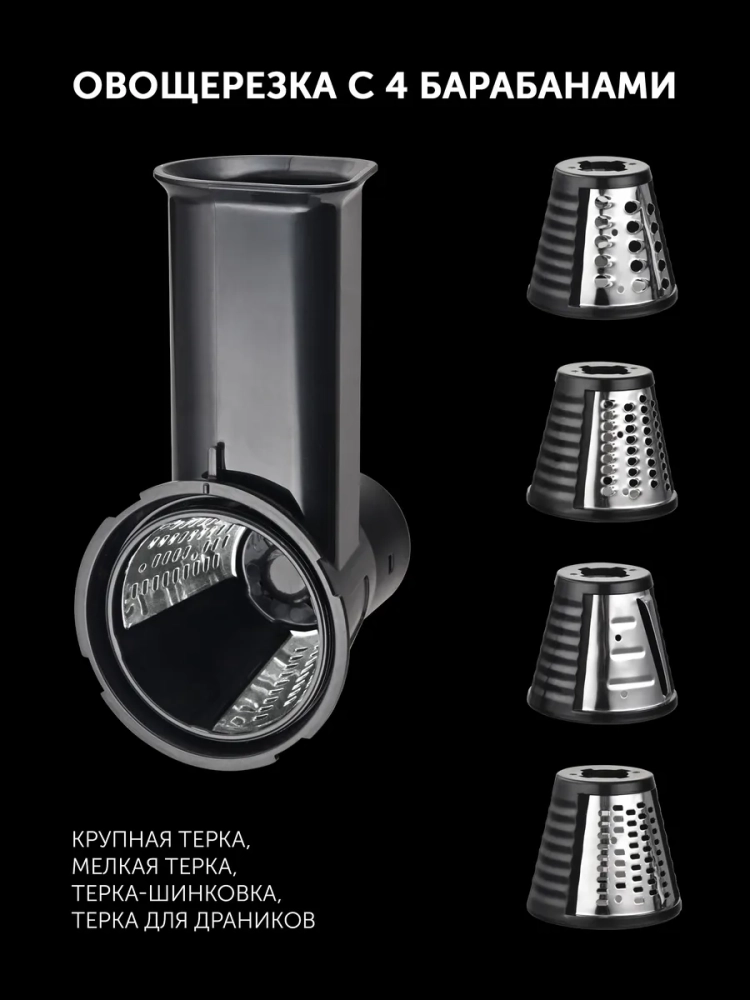 Электрическая мясорубка с решетками для мелкой, средней и крупной рубки справится с любым мясом. Насадки для колбасы и кеббе помогут вам приготовить домашние колбаски. Измельчитель включает мелкую и крупную терки, терку для драников и терку слайсер для шинковки овощей, что значительно облегчает процесс нарезки. Кувшин блендера на 1,5 литра выполнен из высокопрочного стекла.