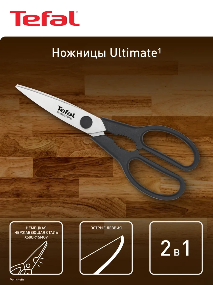 Прибор Тефаль легко чистится, что является важным фактором для поддержания чистоты. Современный дизайн и эргономичная форма делают их не только практичным инструментом, но и стильным дополнением к интерьеру вашего дома. Кухонные ножницы Tefal – это выбор тех, кто ценит качество, функциональность и комфорт в каждой детали своей кухни!