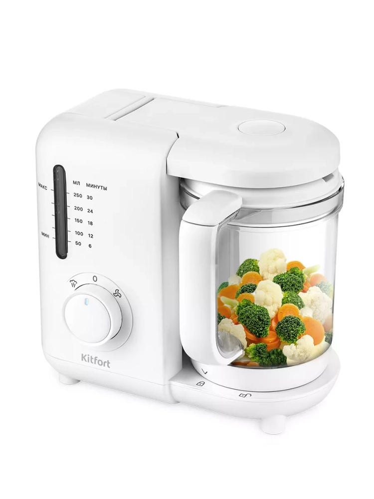 Кухонный блендер измельчитель с чашей 500Вт КТ-2320 от kitfort — это многофункциональный бытовой прибор, который станет незаменимым помощником на вашей кухне. Этот мощный электрический блендер сочетает в себе функции пароварки и измельчителя, что позволяет готовить разнообразные блюда на пар из овощей и других продуктов. Благодаря этому паровому устройству вы сможете сохранить все витамины и полезные вещества в приготовленных блюдах. Чаша устройства обеспечивает равномерное прогревание продуктов за счет постоянной циркуляции пара, что гарантирует качественное приготовление пищи без риска пригорания или переваривания. По окончании процесса приготовления прибор автоматически отключается, обеспечивая безопасность использования. Для дополнительной безопасности эксплуатации блендер работает только с установленной чашей и закрытой крышкой. Резиновые ножки предотвращают скольжение прибора на столе во время работы, обеспечивая его устойчивость. Мытье частей прибора не вызывает затруднений: ножевой блок полностью разбирается для удобного промывания всех элементов по отдельности. Это значительно упрощает уход за устройством после использования. Компактный дизайн блендера позволяет ему легко вписаться в интерьер любой кухни, а его функциональность делает процесс приготовления детского питания быстрым и простым. В комплект поставки входит стакан для смешивания, что добавляет удобства при использовании данного кухонного устройства.