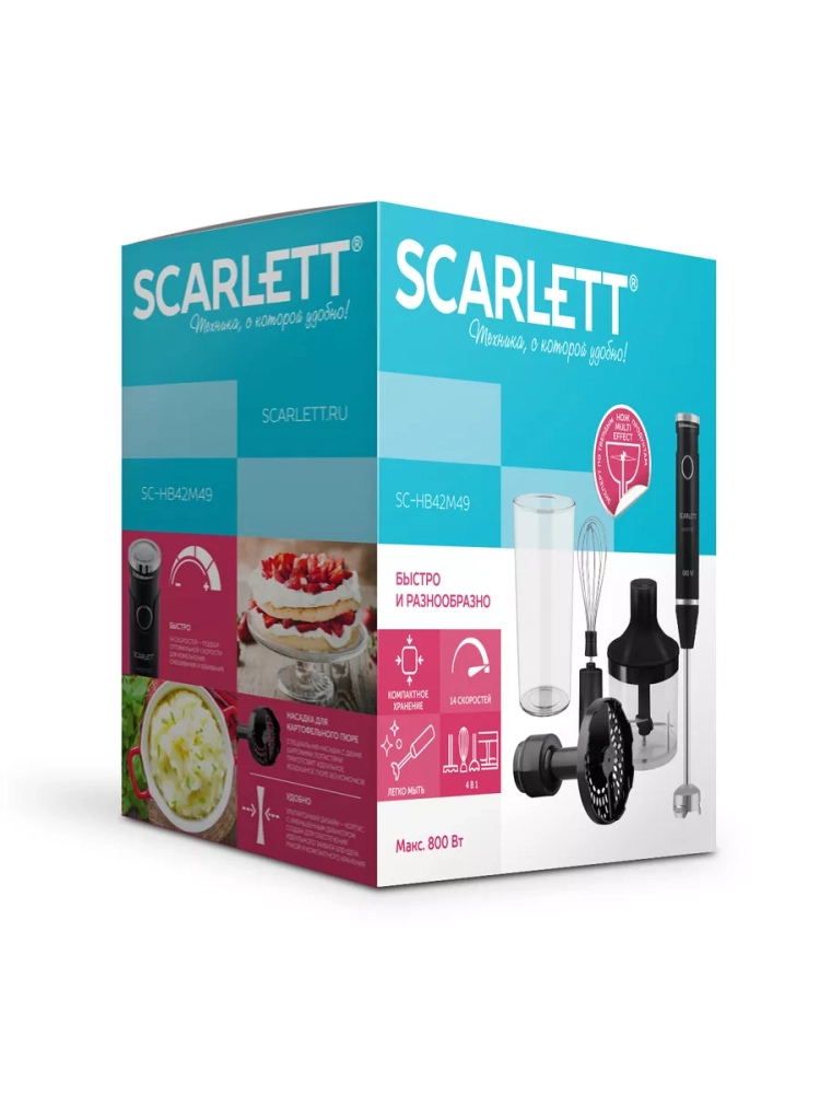 Scarlett SC-HB42M49 - это не только электрический блендер, но и портативный помощник на кухне. Его компактный размер и стильный дизайн делают его удобным и эстетичным аксессуаром для вашей техники на кухне. Благодаря своей многофункциональности и удобству использования, этот блендер станет прекрасным подарком для любителей кулинарии и заботы о питании.