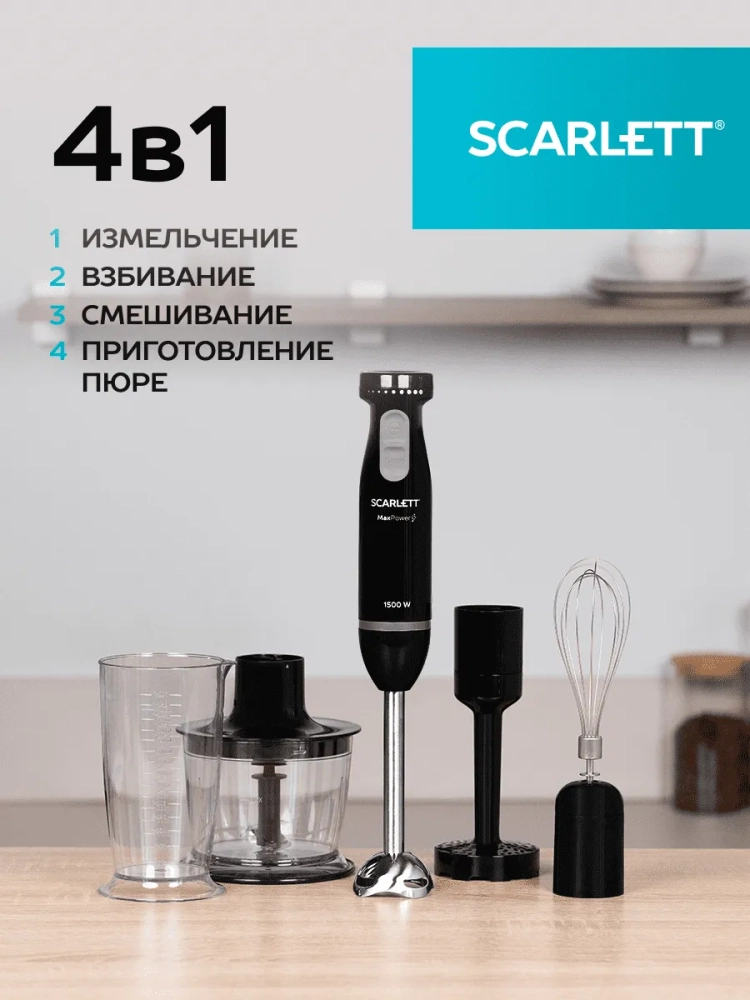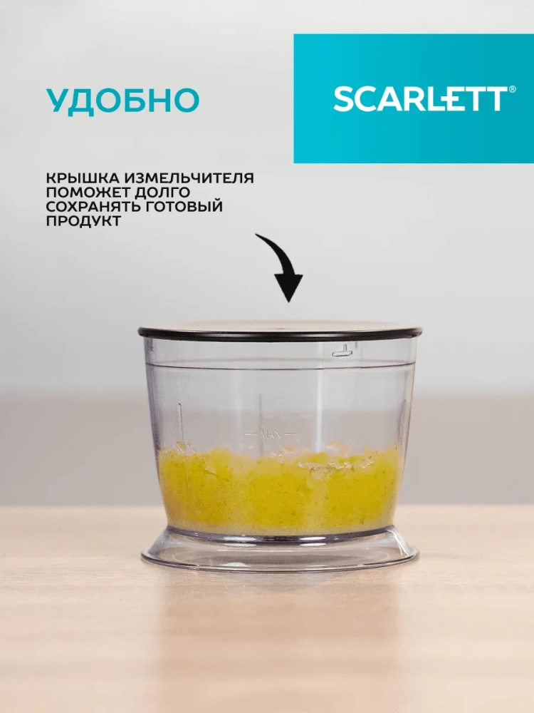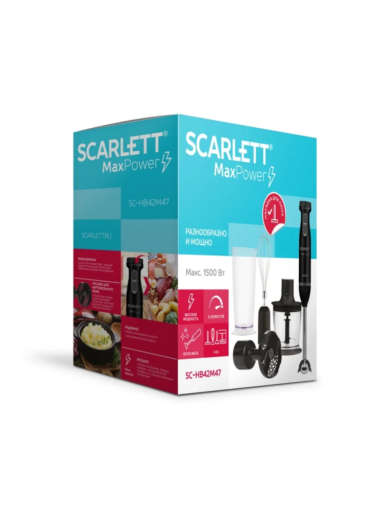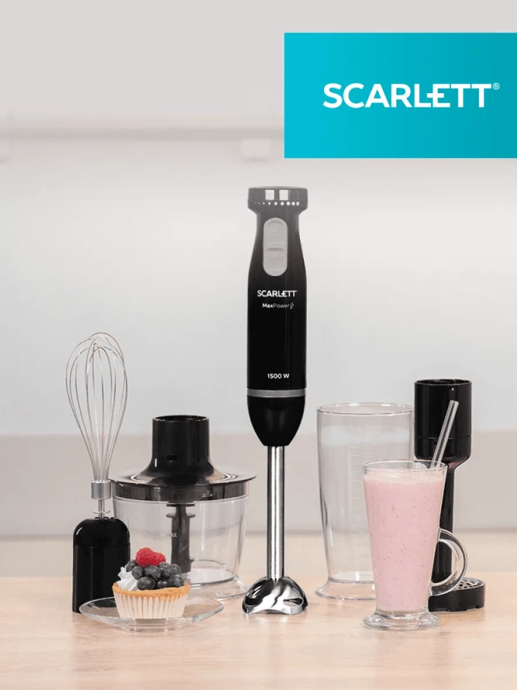 Погружной блендер Scarlett SC-HB42M47 с мотором мощностью 1500 Вт заменяет сразу несколько кухонных приборов и помогает приготовить разные блюда от нежных домашних соусов до ароматной выпечки.
