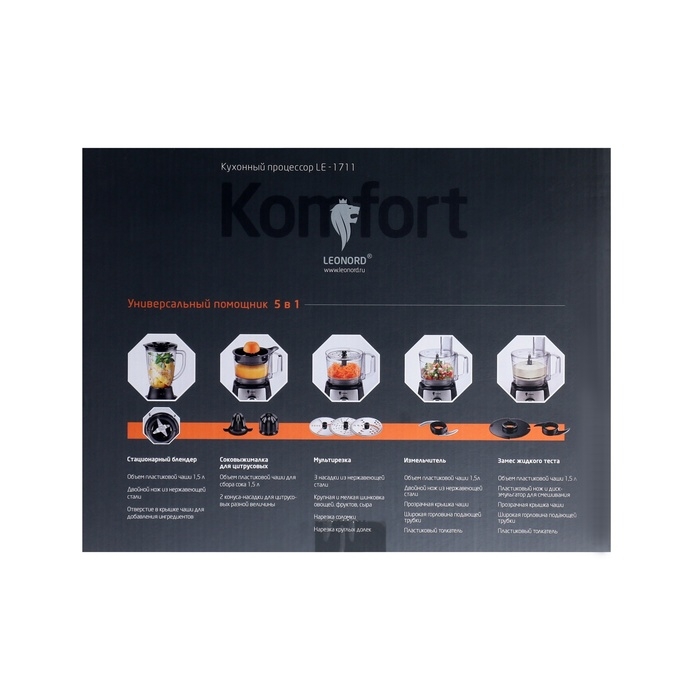 Кухонный комбайн Leonord LE-1711, планетарный, 1200 Вт, 1.5 л, блендер, соковыжималка