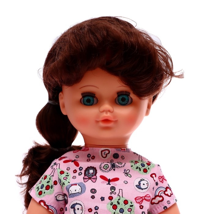- Кукла произносит фразы, если нажать на её живот, куда встроено звуковое устройство. Может прозвучать от 3 до 8 фраз.