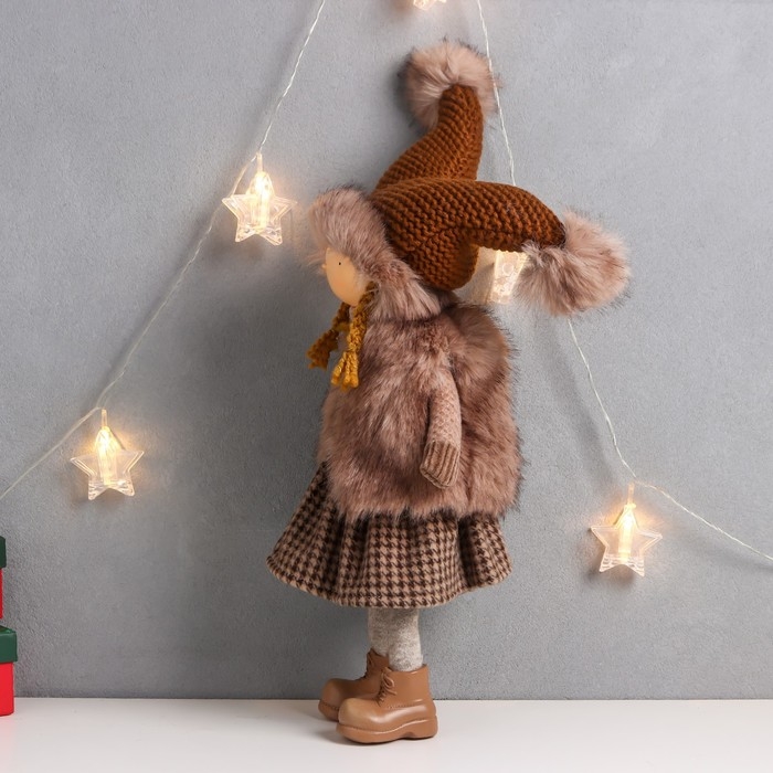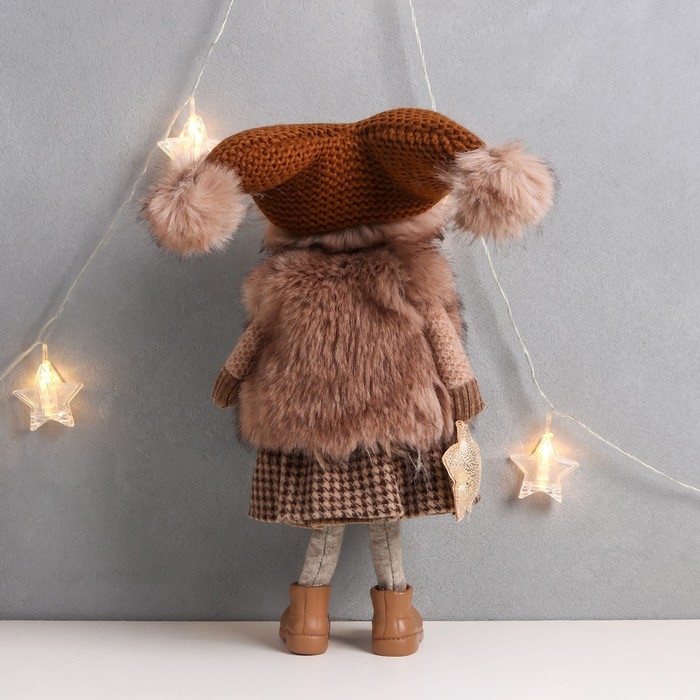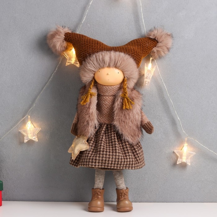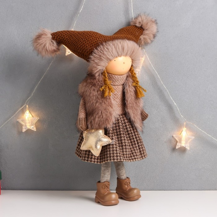 Кукла интерьерная "Девочка в коричневой шубке и шапке со звёздочкой" 20х11х47 см
