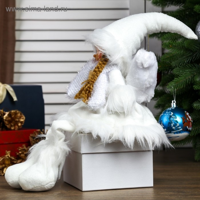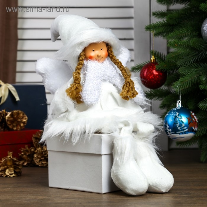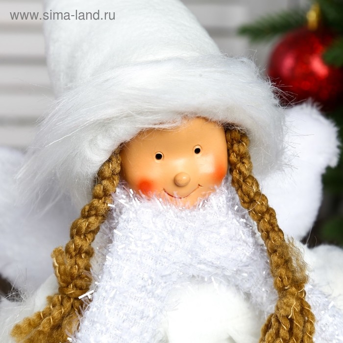 Кукла интерьерная "Ангел-девочка в белой шубке, колпаке и шарфике" 47 см