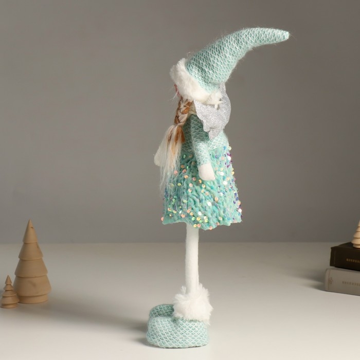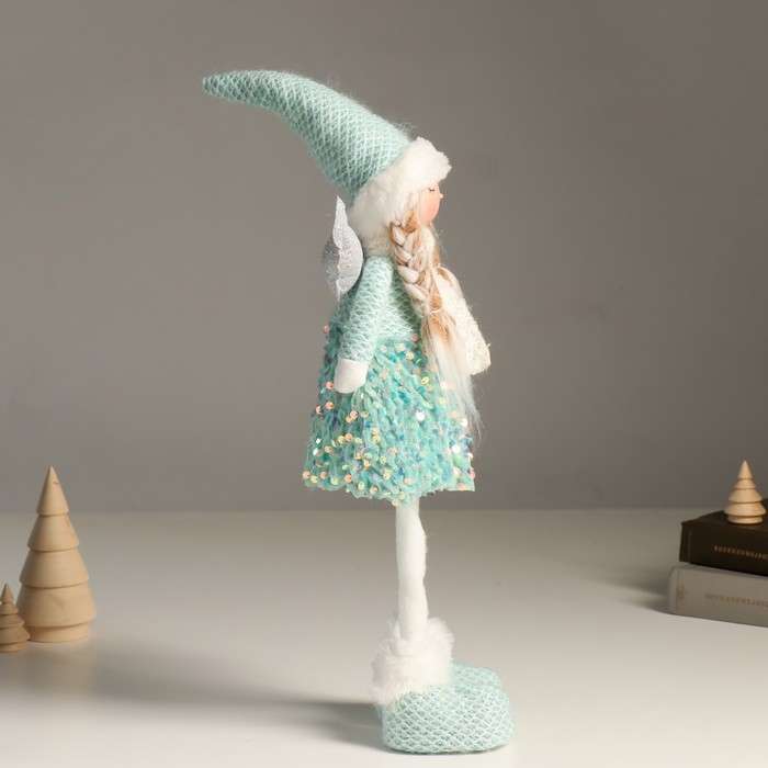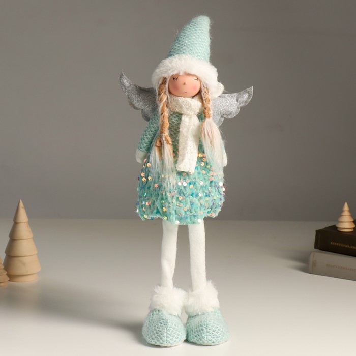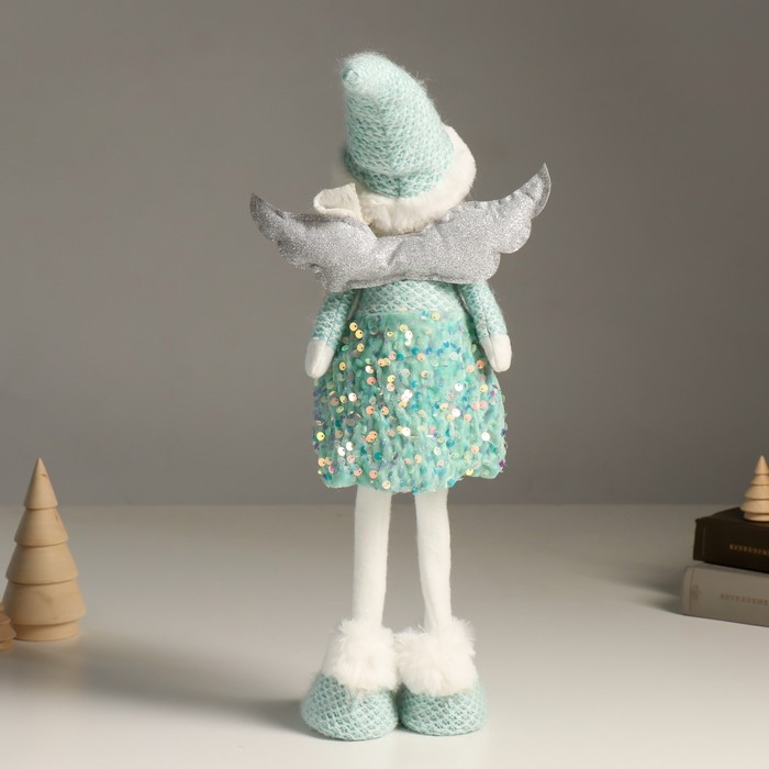 Кукла интерьерная "Ангелочек в бирюзовом наряде с пайетками, серебристые крылья" 49 см