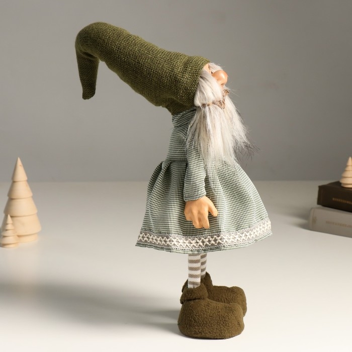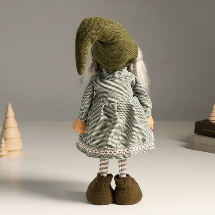 Кукла интерьерная "Бабка Ёжка в зеленом платье с сердечком и колпаке" 36 см