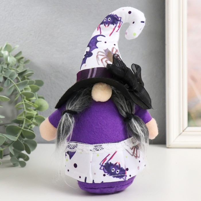 Кукла интерьерная "Бабуся в наряде с паучками и летучими мышами" 13х7х21 см
