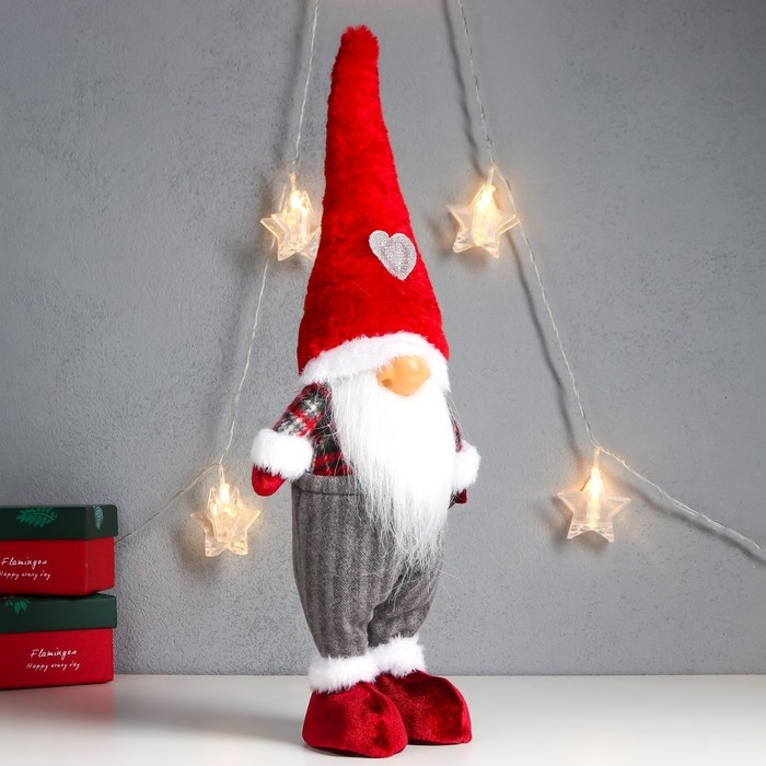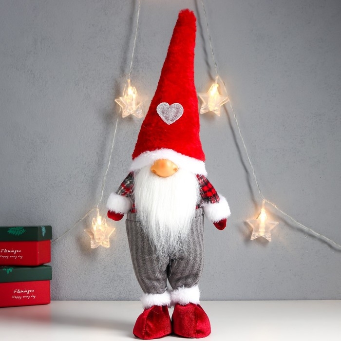 Кукла интерьерная "Дед Мороз только нос, в колпаке с сердечком" 43х16х10 см