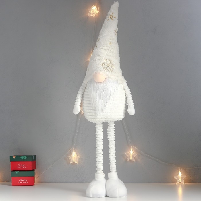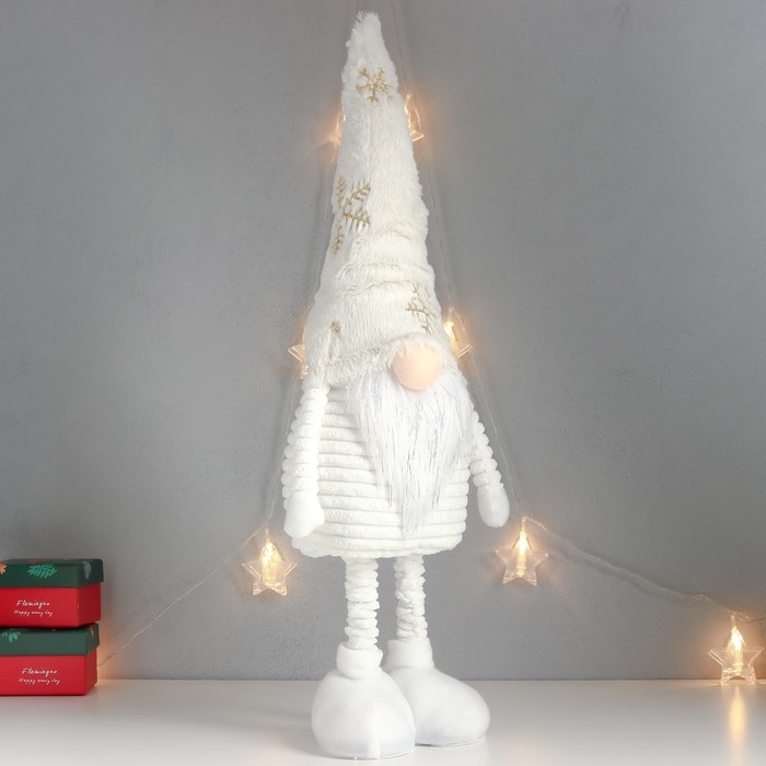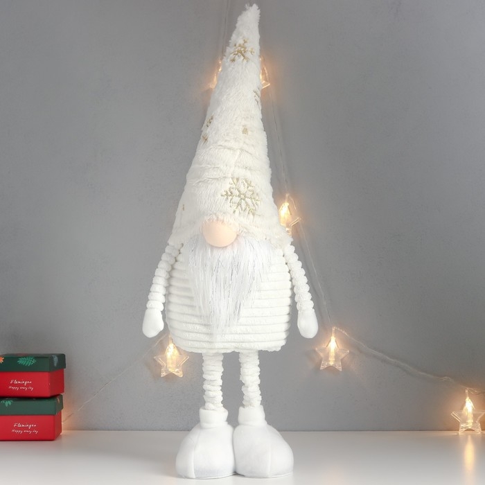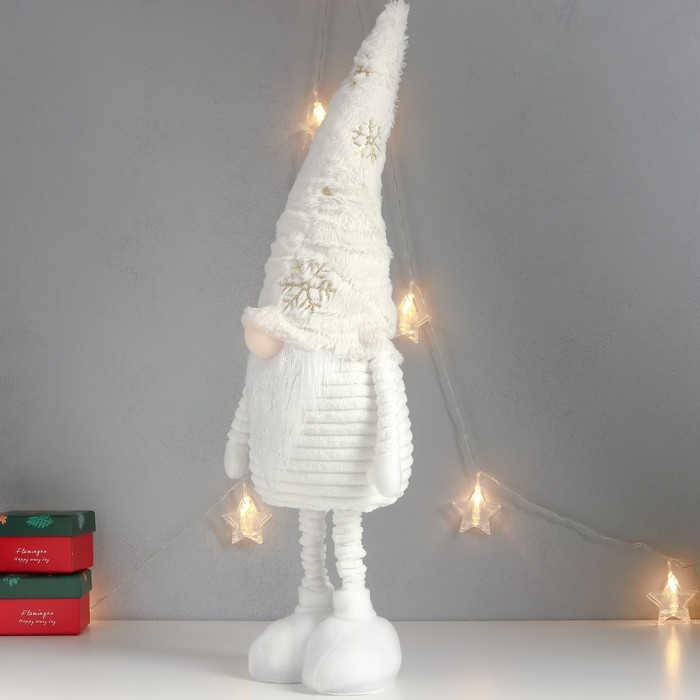 Кукла интерьерная "Дед Мороз в белом колпаке с золотом" раздвижной 80х22х14 см