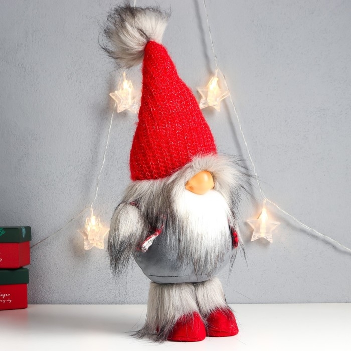 Кукла интерьерная "Дед Мороз в красном колпаке с меховой бомбошкой" 45х18х11 см